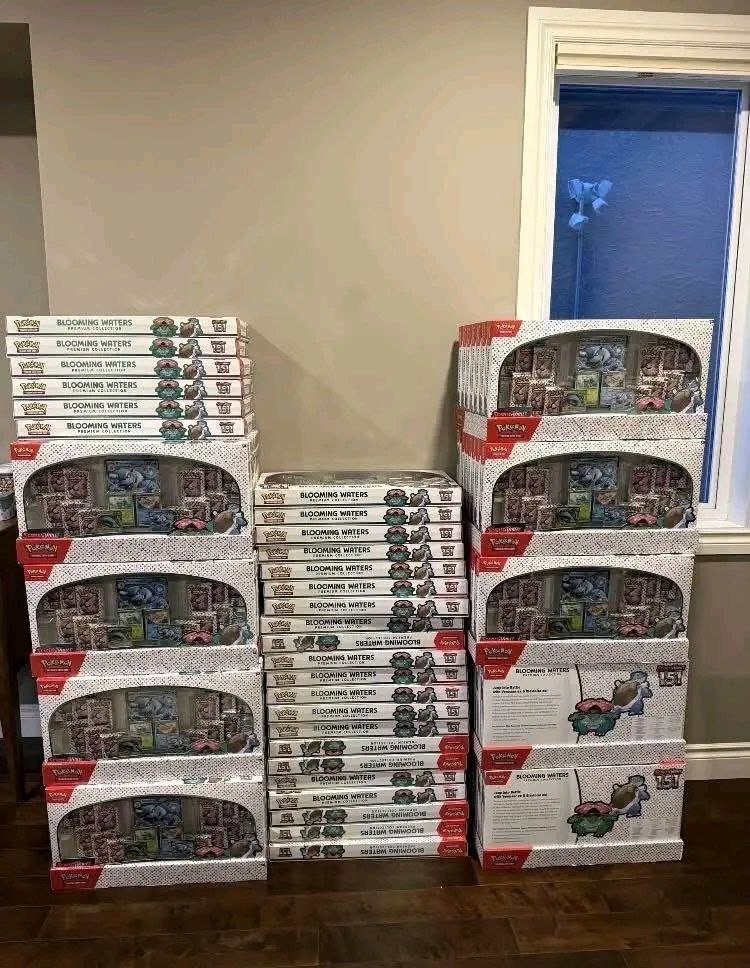 Blooming Waters Poster Collection – Collector Set The Blooming Waters Poster Collection includes booster packs, a promotional card, and a collectible poster featuring Pokémon artwork from the Blooming Waters expansion. Features: • Multiple booster packs • Exclusive promo card • Collectible Pokémon poster • Factory sealed box Great for collectors and fans.