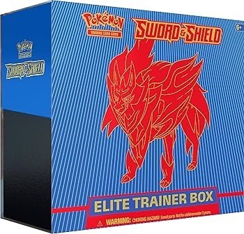 The Sword & Shield Elite Trainer Box – Zamazenta Edition features booster packs and Zamazenta-themed accessories, perfect for collectors and Pokémon TCG players.